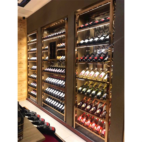 酒莊玫瑰金不銹鋼恒溫酒柜酒窖定做_不銹鋼恒溫酒柜廠家圖