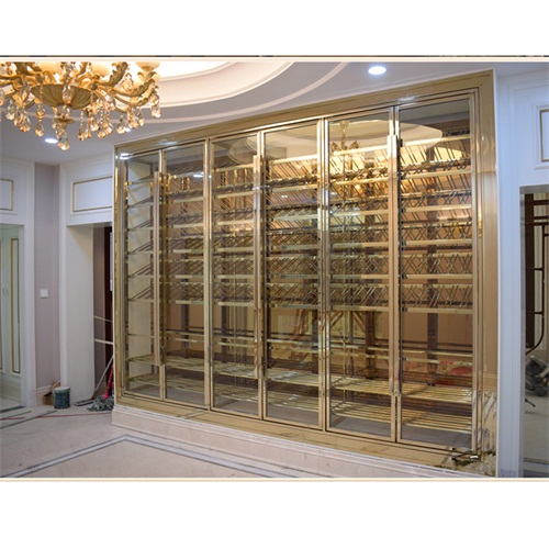 現(xiàn)代輕奢酒店玫瑰金不銹鋼酒柜_不銹鋼恒溫酒柜定制圖