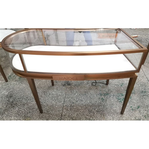 片尺寸價(jià)格說明定做服務(wù)。弧形不銹鋼珠寶展示柜與其他不銹鋼展示柜一樣,主要由不銹鋼框架制成,表面經(jīng)過玫瑰金鍍鈦處理,使其更加豐富多彩。
