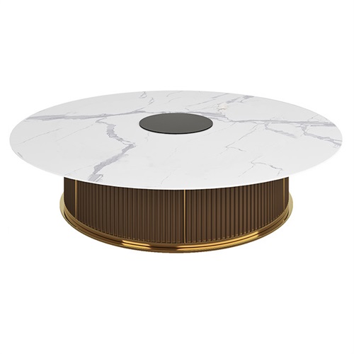 是由天然原料經(jīng)過特殊工藝,借助萬噸以上壓機(jī)壓制(超過15000噸),結(jié)合先進(jìn)的生產(chǎn)技術(shù),經(jīng)過1200℃以上高溫?zé)贫?,能夠?jīng)得起切割、鉆孔、打磨等加工過程的超大規(guī)格新型瓷質(zhì)材料。餐桌面或者是轉(zhuǎn)盤面采用巖板設(shè)計(jì),具有輕、耐磨、無滲透等優(yōu)點(diǎn)。