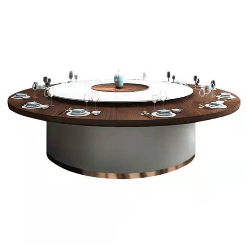 別墅巖石板實木多功能旋轉(zhuǎn)電動餐桌子圖