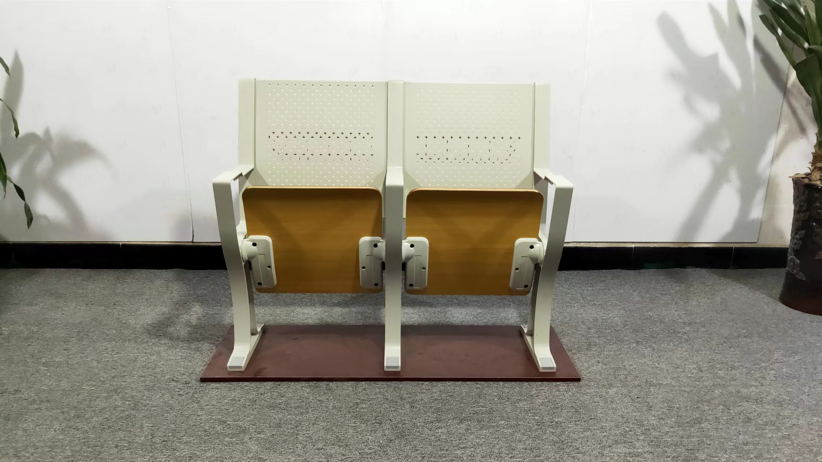 3、座:采用多層板經模具熱壓彎曲成型,面粘防火板,厚度為16mm,精制而成,牢固耐用,不褪色;
