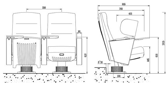 | 座椅深度:855±10mm,扶手高610±10mm:最小排距:900mm。 |