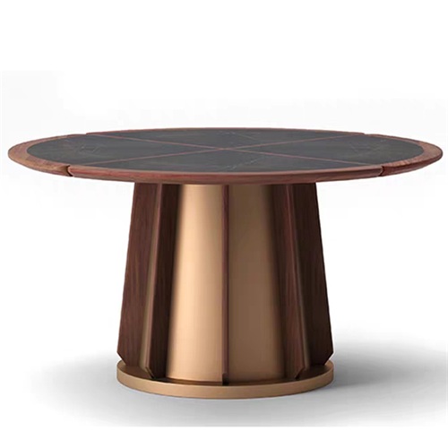 餐廳家具廠家為您展示現(xiàn)代中式餐廳包房鈦金不銹鋼巖板圓桌圖片展示\價(jià)格說明\定做服務(wù)。